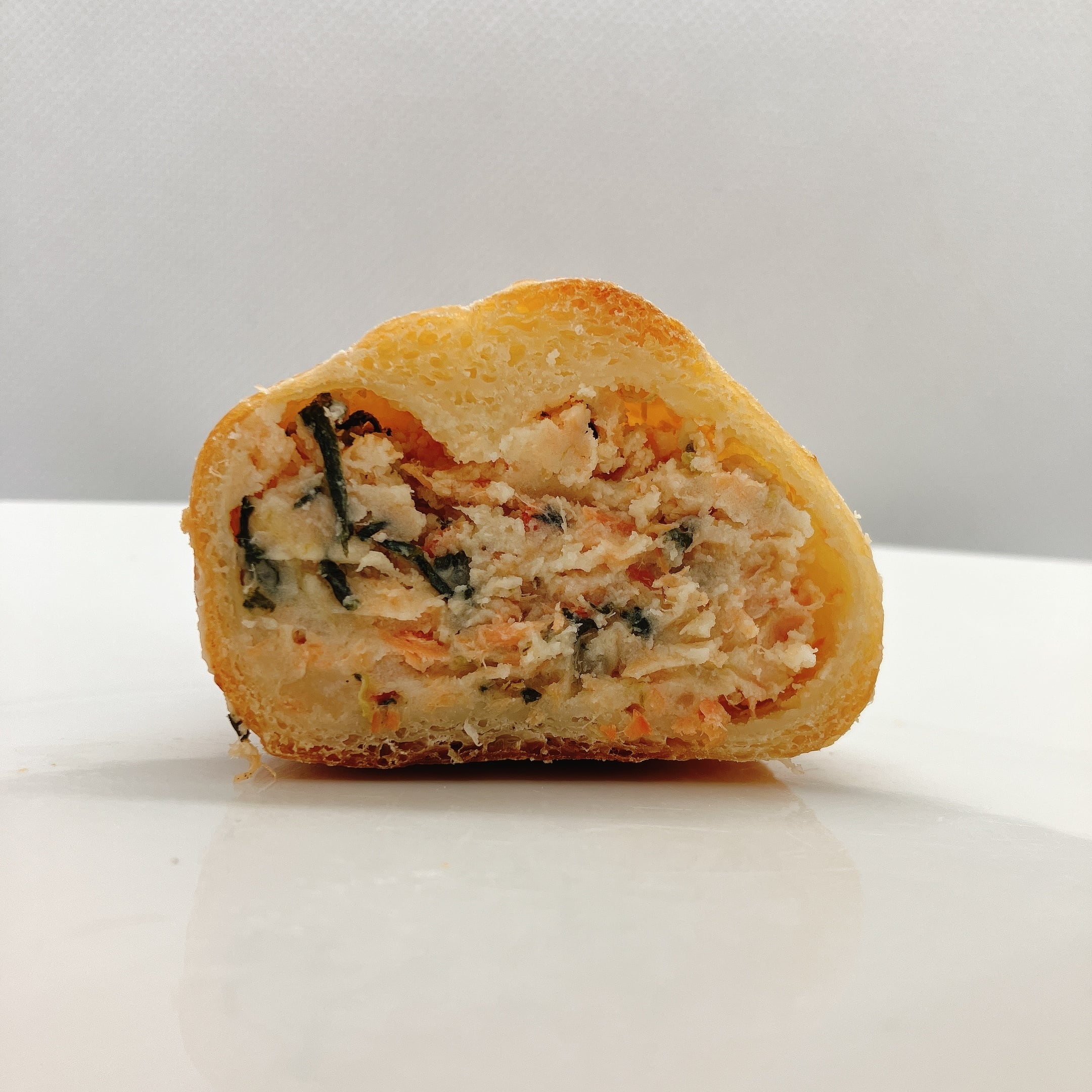 【原材料】小麦粉、おから、スキムミルク、三温糖、米油、白神こだま酵母、じゃがいも、クリームチーズ、しゃけ、ほうれん草、サワークリーム、塩、こしょう、ディル (一部に小麦・乳成分を含む)